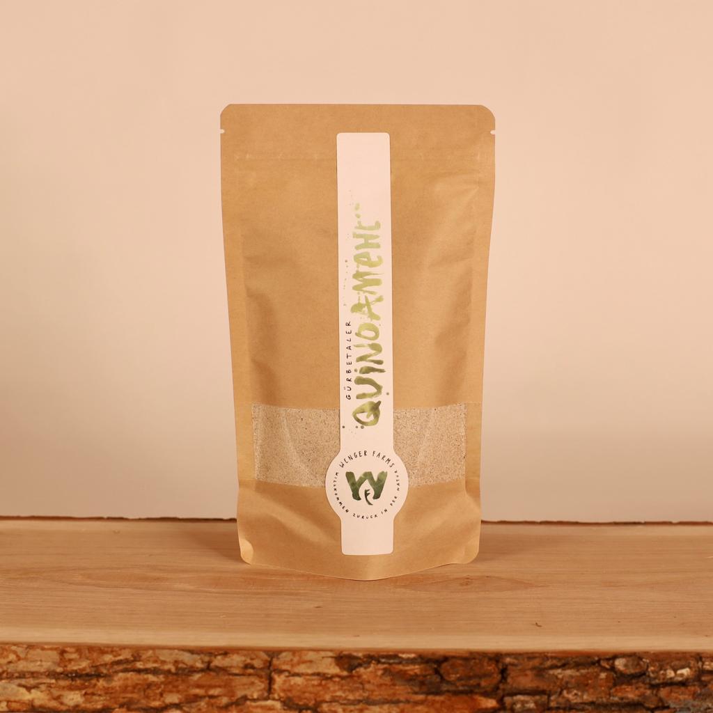 Quinoamehl ist nussig und herb im Geschmack. Es ist reich an Wertvollen Inhaltsstoffen. Quinoamehl kann wie herkömmliches Mehl für süsse und salzige Backwaren wie Brot, gesunde Kuchen, Muffins, oder Pizzaböden verwendet werden. Um einen schön Festen Teig zu bekommen, sollte man Quinoamehl immer mit einer anderen Mehlsorte ergänzen. Es empfiehlt sich, den Quinoamehlanteil im Verhältnis zum restlichen Mehl um einem Drittel herum zu halten.